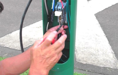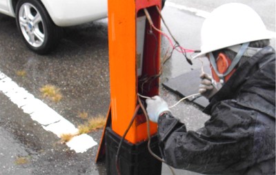 朝日町庁舎駐車場外灯 点灯時間手動式 1日 12時間